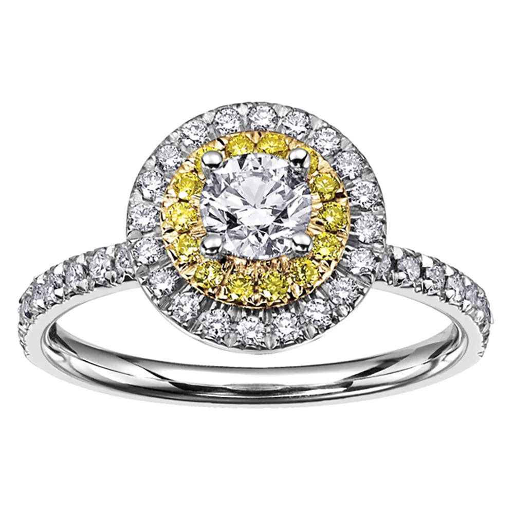 Round Canadian Diamond Ring with Fancy Yellow Diamond Halo