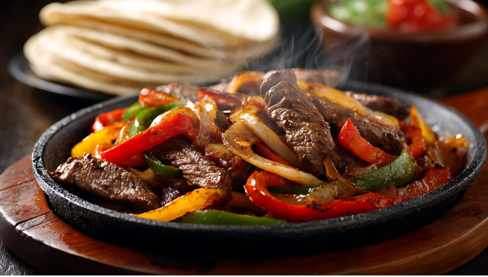 Fajitas remain the restaurant’s defining dish. The platters arrive at the table still sizzling on cast-iron skillets, typically served with grilled chicken or steak, flour tortillas and a selection of toppings and sauces.