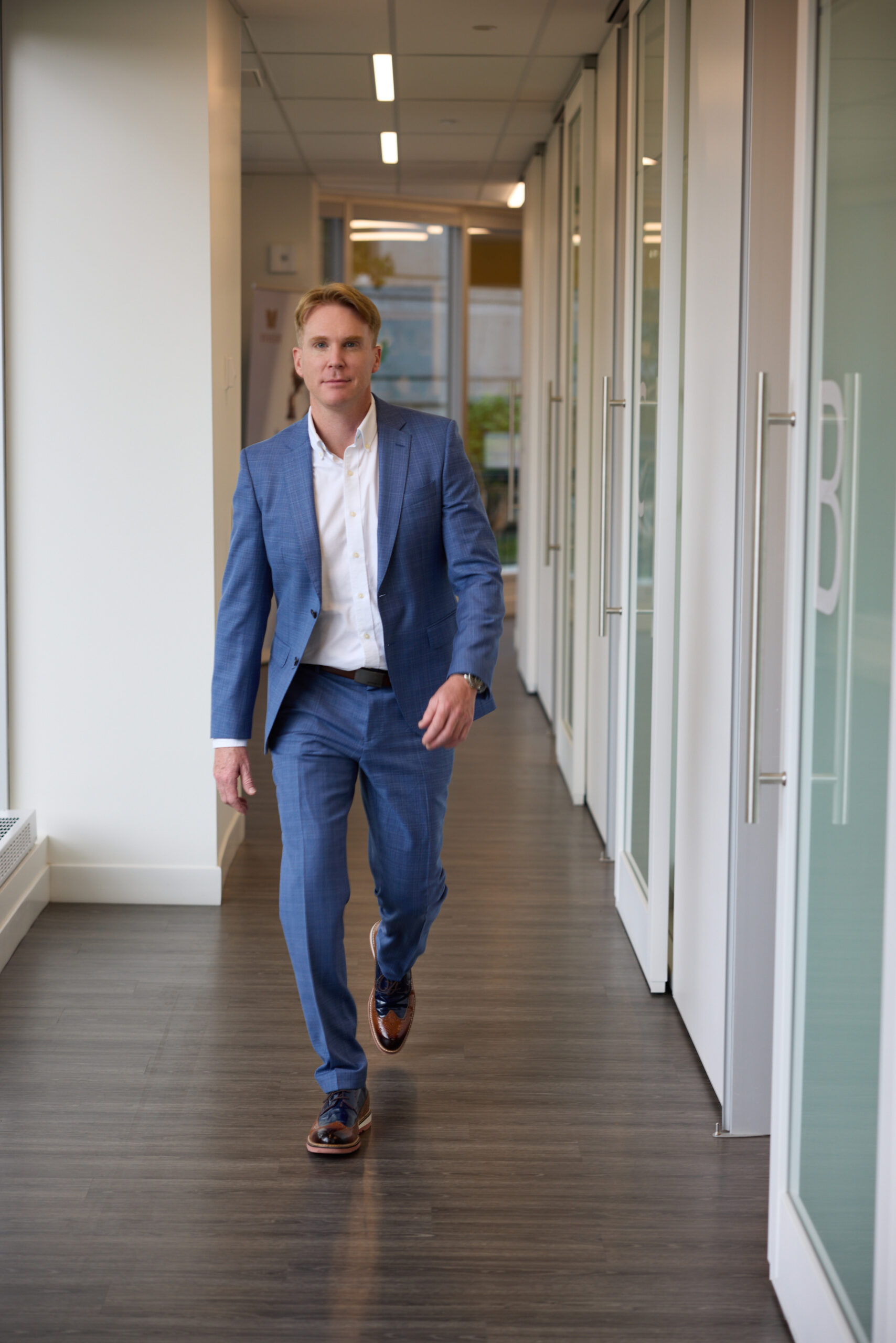 Dr. Sean Smith, co-founder of The Ottawa Clinic, pictured in the clinic’s main hallway. The practice has grown to include 6 consult rooms and 5 treatment rooms, providing full-spectrum aesthetic and reconstructive care.