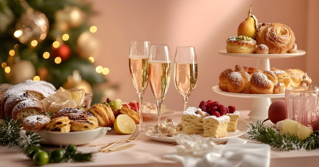 At Perspectives Restaurant, elegance meets warmth. Guests can expect a Christmas Day dinner that celebrates the classics with a modern twist: a crisp watercress salad with dried cranberries and toasted pecans, a choice of herb-roasted turkey, seaweed-crusted hake, or butternut squash ravioli dressed in sage brown butter and cranberry gastrique, and a warm ginger-spiced cake with caramel sauce and green apple sorbet to finish. Each dish is thoughtfully composed, offering a festive dining experience that captures the spirit of the season.
