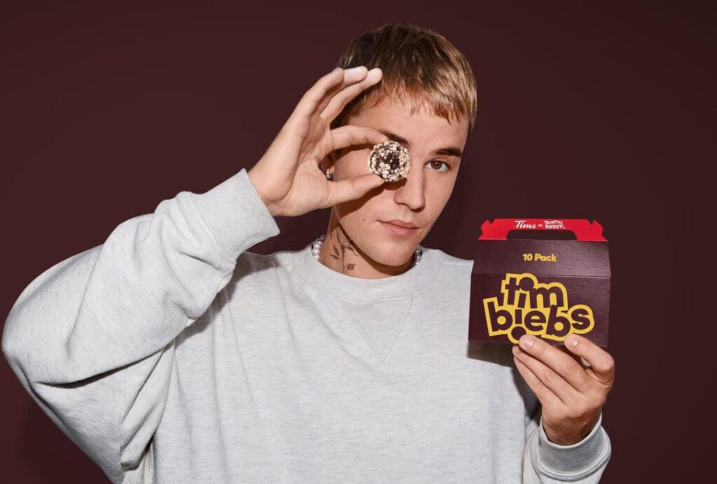 The launch of limited edition Timbits and Merch in collaboration with the proud Canadian megastar didn’t just pack Tim Hortons drive-thrus at the end of 2021. Tim Hortons became a celeb-backed luxury label for three whole weeks, thwarting off black markets and knock-offs and re-stock issues, and prompting fan messages, even fan art (a Toronto man made a JB portrait out of 150 timbiebs in celebration of the collab). Most incredibly, the partnership made Tim Hortons cool again, to a crowd that grew up on Timbits, but may have been lost along the way in favour of the trendier Starbucks brand.